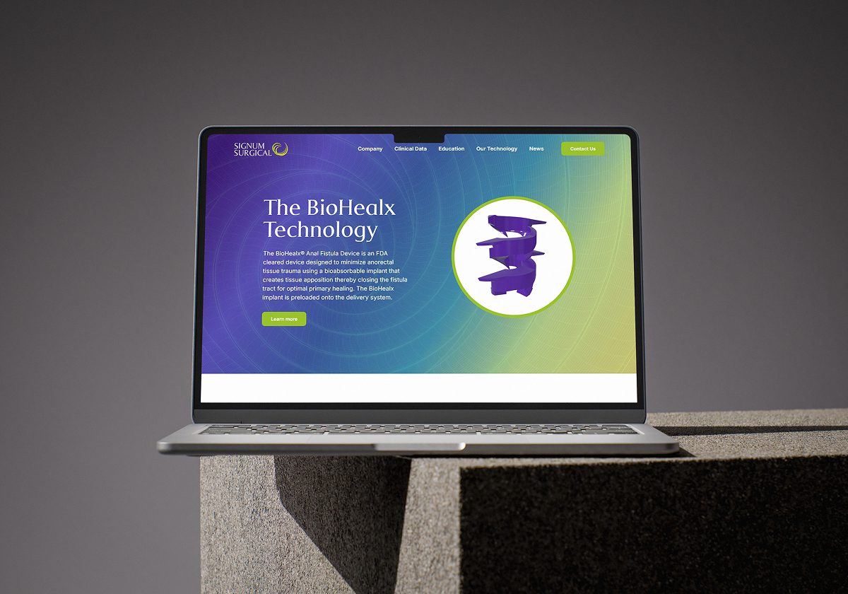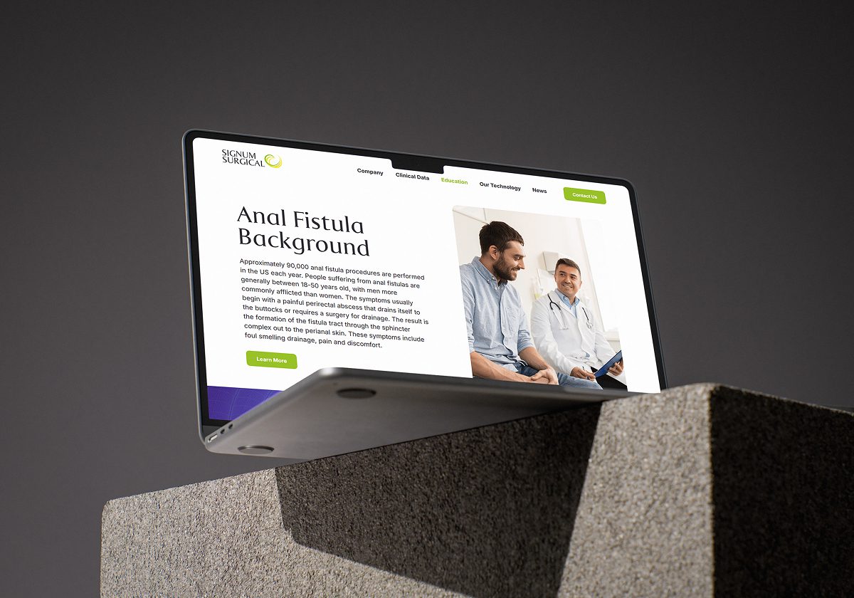 Signum Surgical has developed BioHealx®, a minimally invasive device designed to close anal fistulas via tissue apposition. Their previous web presence did not fully convey the urgency of the condition or the advantages of the technology. The brief was to craft a user‑friendly, modern site that educates clinicians, patients and investors while supporting Signum’s mission to empower clinicians and improve patient outcomes.